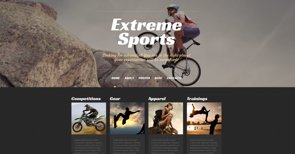 Dit is Extreme Sports WordPress-ontwerp met Cherry Framework