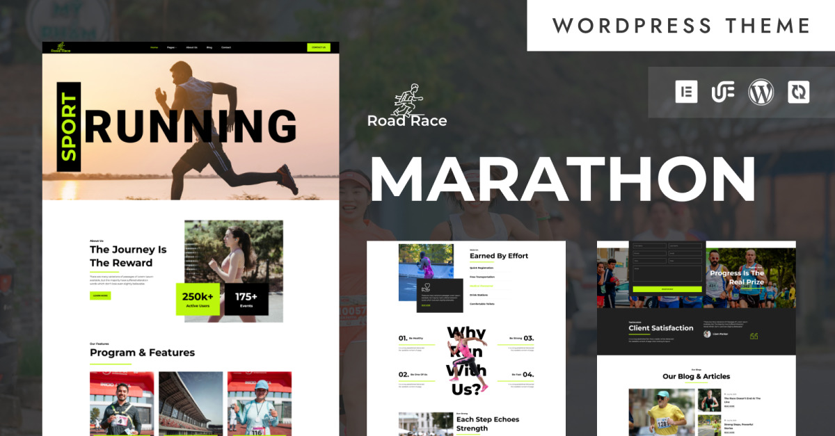 Maak kennis met Road Race Marathon, een krachtige WordPress-template die zorgvuldig is ontwikkeld voor sportevenementen, marathonorganisatoren, hardloopclubs, triatlons, liefdadigheidslopen en sportcampagnes. Marathon is ontworpen met snelheid, wendbaarheid en gebruikerservaring in gedachten en combineert moderne esthetiek met robuuste functies om je fitnessevenement een digitale touch te geven.