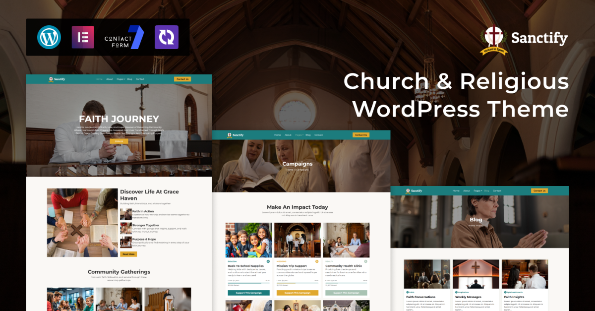 Sanctify – Church & Religious WordPress Theme is een prachtig vormgegeven thema, speciaal ontworpen voor kerken, ministeries, non-profitorganisaties en spirituele gemeenschappen. Met zijn warme en aantrekkelijke ontwerp stelt Sanctify je in staat om preken te delen, aankomende evenementen te promoten, ministeries te promoten en online contact te leggen met je gemeente.