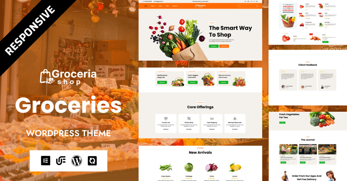 Dankzij de snelle laadtijden, SEO-vriendelijke codering en compatibiliteit met populaire WordPress-plug-ins helpt deze Groceria-boodschappentemplate je niet alleen om meer bezoekers te trekken, maar zorgt het ook voor een soepele orderverwerking en betrouwbaar winkelbeheer. Van de weergave van de productcatalogus tot het afrekenen, elke stap is gestroomlijnd voor maximale efficiëntie.