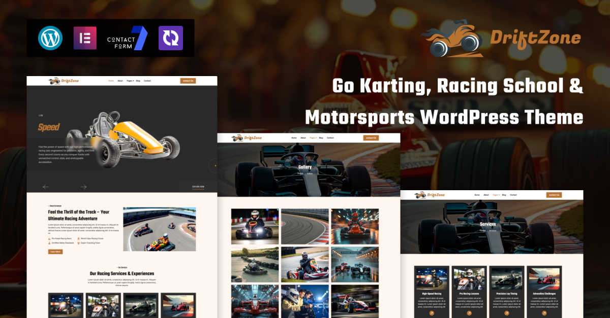 DriftZone is ontwikkeld met Elementor Page Builder en biedt volledige flexibiliteit om je site moeiteloos te personaliseren. De krachtige beelden, vloeiende animaties en race-geïnspireerde esthetiek zorgen voor een professionele online aanwezigheid voor motorsportbedrijven, rijscholen en evenementenorganisatoren.
