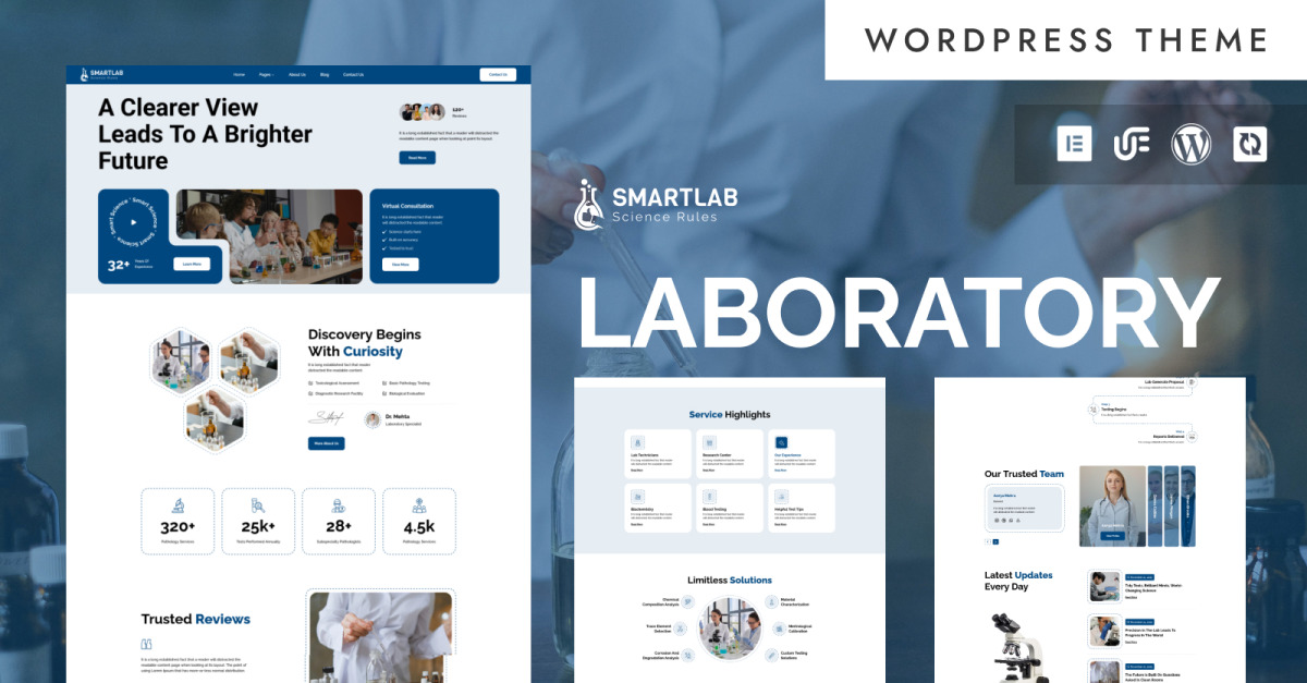 Dit SmartLab WordPress-thema is een strak, modern en zeer professioneel thema, speciaal ontworpen voor laboratoria, onderzoekscentra, medische testfaciliteiten, biotechnologiebedrijven, farmaceutische bedrijven, pathologielaboratoria en wetenschappelijke instellingen die hun werk op een geloofwaardige en heldere manier willen presenteren. Met een perfecte balans tussen esthetiek en functionaliteit helpt dit thema u uw laboratoriumdiensten, testpakketten, apparatuur, team, certificeringen en onderzoeksprojecten op een gestructureerde en visueel aantrekkelijke manier te presenteren – zonder dat u hoeft te programmeren.