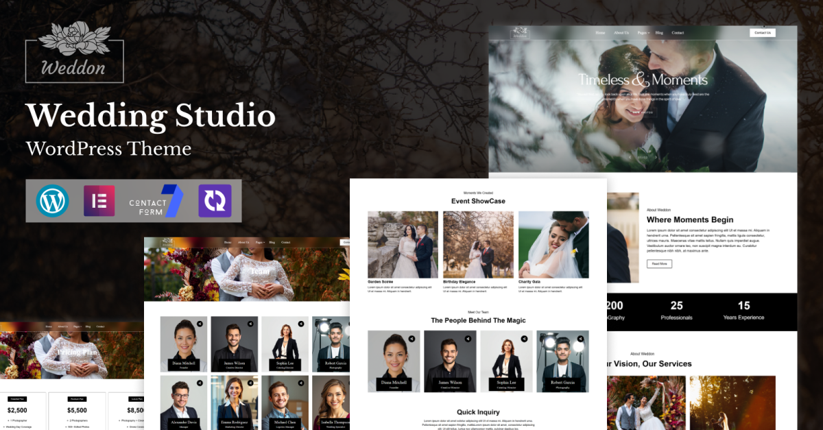 Het Elementor WordPress-thema Wedding Studio is ontworpen voor trouwstudio's, fotografen, videografen en creatieve aanbieders van trouwdiensten die een elegante en professionele online aanwezigheid willen. Het thema beschikt over verfijnde lay-outs en romantische visuele elementen die trouwfotografie, films, albums en speciale momenten prachtig presenteren. Het is ideaal voor het presenteren van portfolio's, pakketten en studiodiensten op een visueel aantrekkelijke manier.
