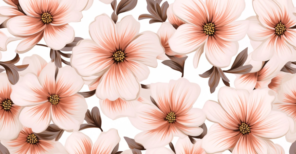 Floral Pattern Warm Tones, Pink & White Flowers Tile Background.
