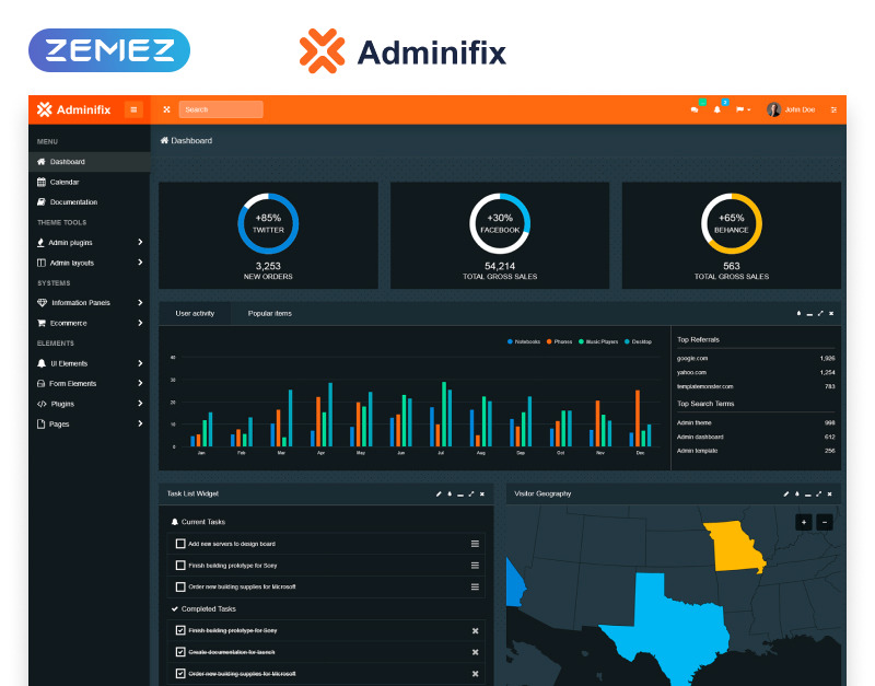 Szablon administratora pulpitu nawigacyjnego to świetna opcja dla każdej opracowanej witryny internetowej i umożliwia śledzenie ruchu na stronie internetowej. Pozwala również na stworzenie przyjaznego dla użytkownika interfejsu użytkownika dzięki przydatnym wtyczkom i układom. Możesz także użyć różnych elementów, które sprawią, że Twój dashboard będzie jeszcze lepszy. Adminfix posiada pełną dokumentację, a przydatne informacje o tym, jak korzystać z panelu administracyjnego deski rozdzielczej, można znaleźć. Co więcej, Adminfix ma atrakcyjny, nowoczesny wygląd i świetnie wygląda. Na pewno ci się spodoba. Posiada również zaawansowaną funkcję wyszukiwania i zapewnia intuicyjną nawigację dzięki najwyższej klasy strukturze.