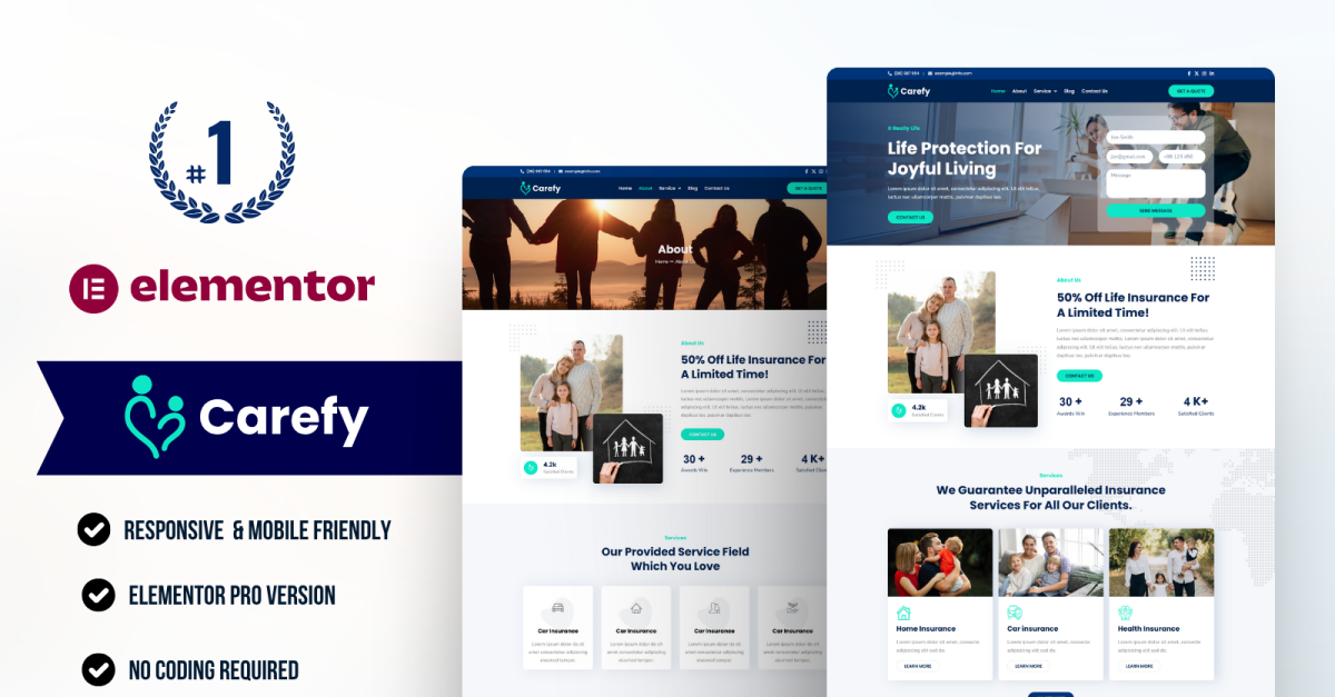 Carefy Life Insurance WordPress Elementor Szablon zestaw