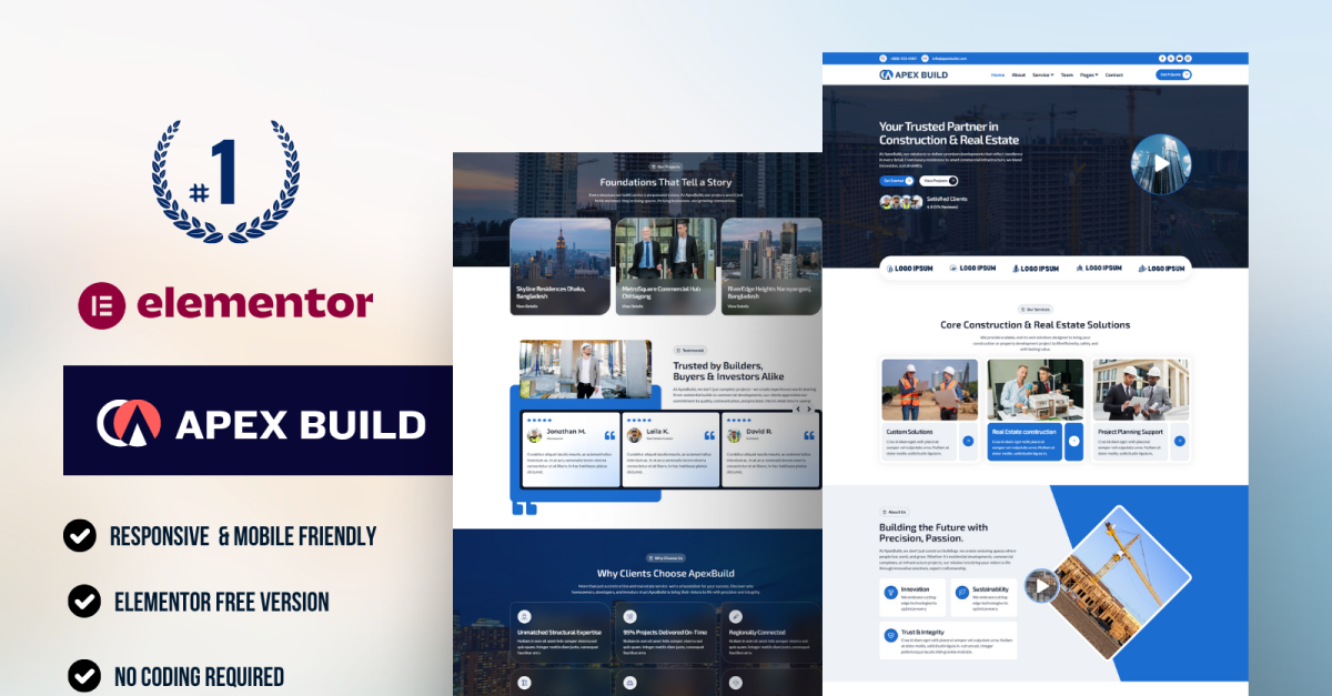 ApexBuild – Zestaw szablonów Elementor do budowania i konstrukcji