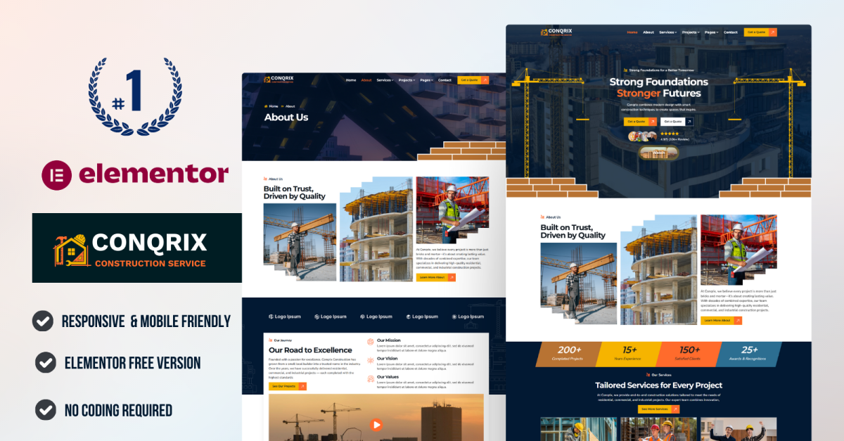 Conqrix – Szablon WordPressElementor dla branży budowlanej i usług budowlanych