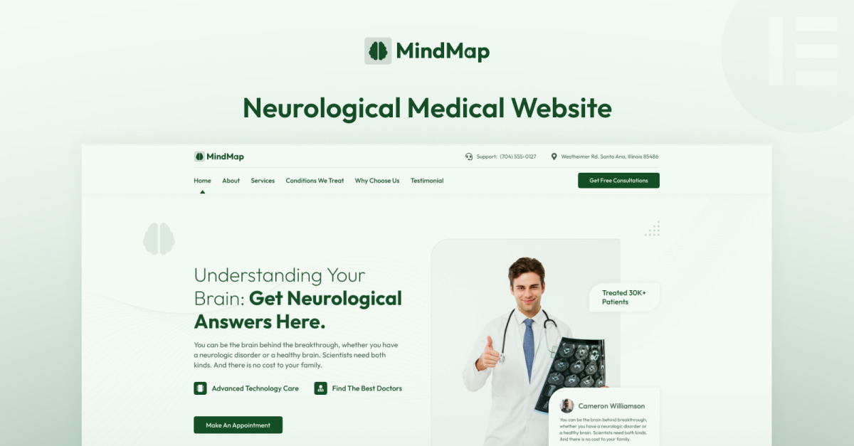 MindMap: Szablon Elementor witryny internetowej o tematyce neurologicznej i medycznej