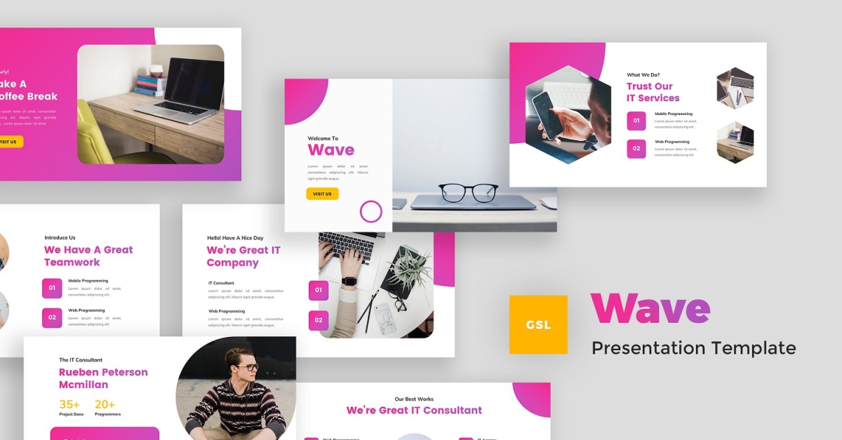 Przedstawiamy Wave — rozwiązania i usługi IT Szablon prezentacji Google