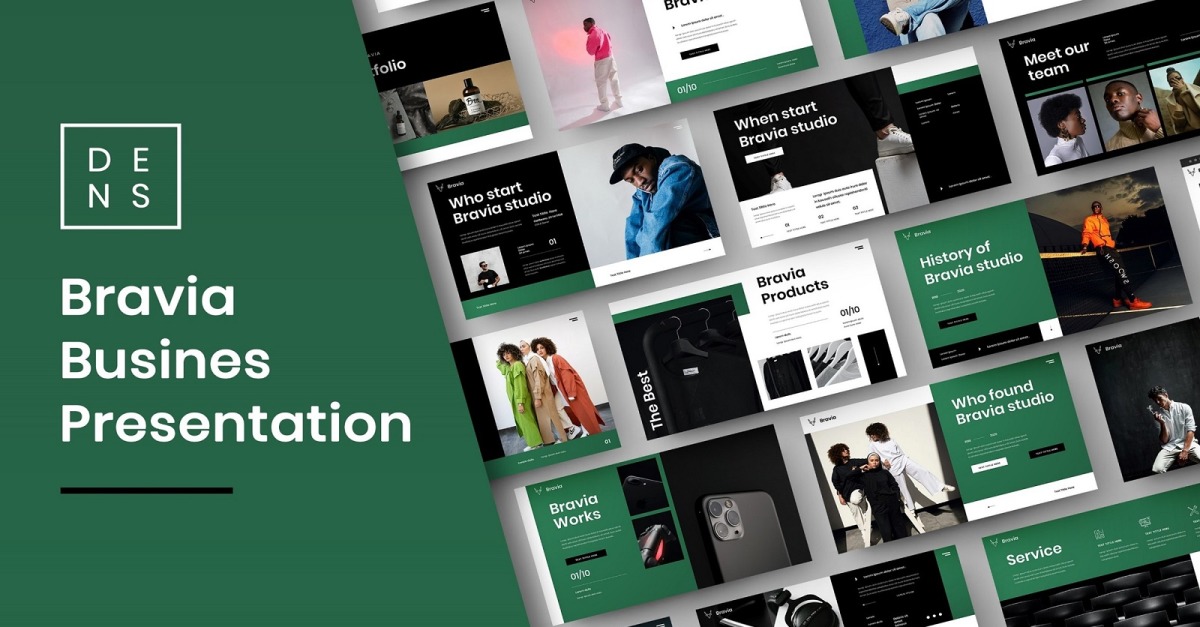 Przedstawiamy **Bravia — biznesowy szablon prezentacji Google**