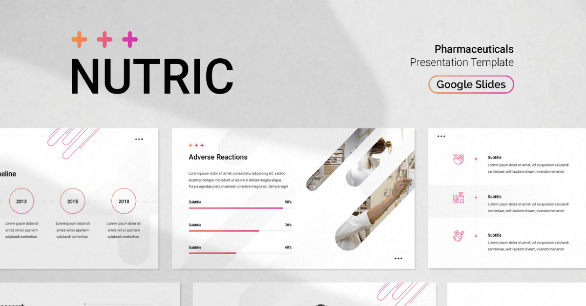 Tworząc szablon Nutric Pharmaceutical, skupiliśmy się przede wszystkim na firmach i osobach pracujących nad rozwojem i sprzedażą nowych leków i technologii, medycznych ośrodkach badawczych. Niezależnie od tego, czy składasz ofertę ważnemu nowemu klientowi, czy portfolio biznesowemu, ten szablon Prezentacji Google pozwoli Ci szybko i skutecznie zamienić informacje i dane w prezentację.