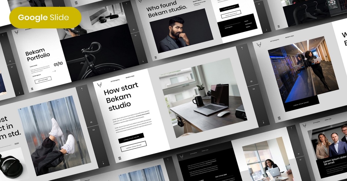 Przedstawiamy **Bekam – biznesowy szablon prezentacji Google**