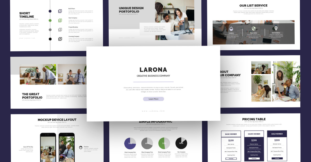 Larona Business Profil firmy Szablon prezentacji Google Płaski, czysty, minimalistyczny, elegancki i elastyczny szablon prezentacji.