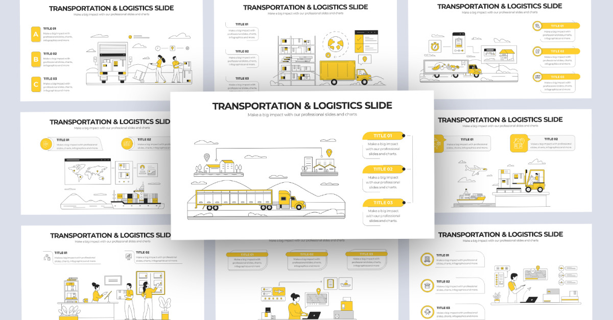 Transport i logistyka Vector Infografika Szablon slajdów Google Płaski, czysty, minimalistyczny, elegancki i elastyczny szablon prezentacji.