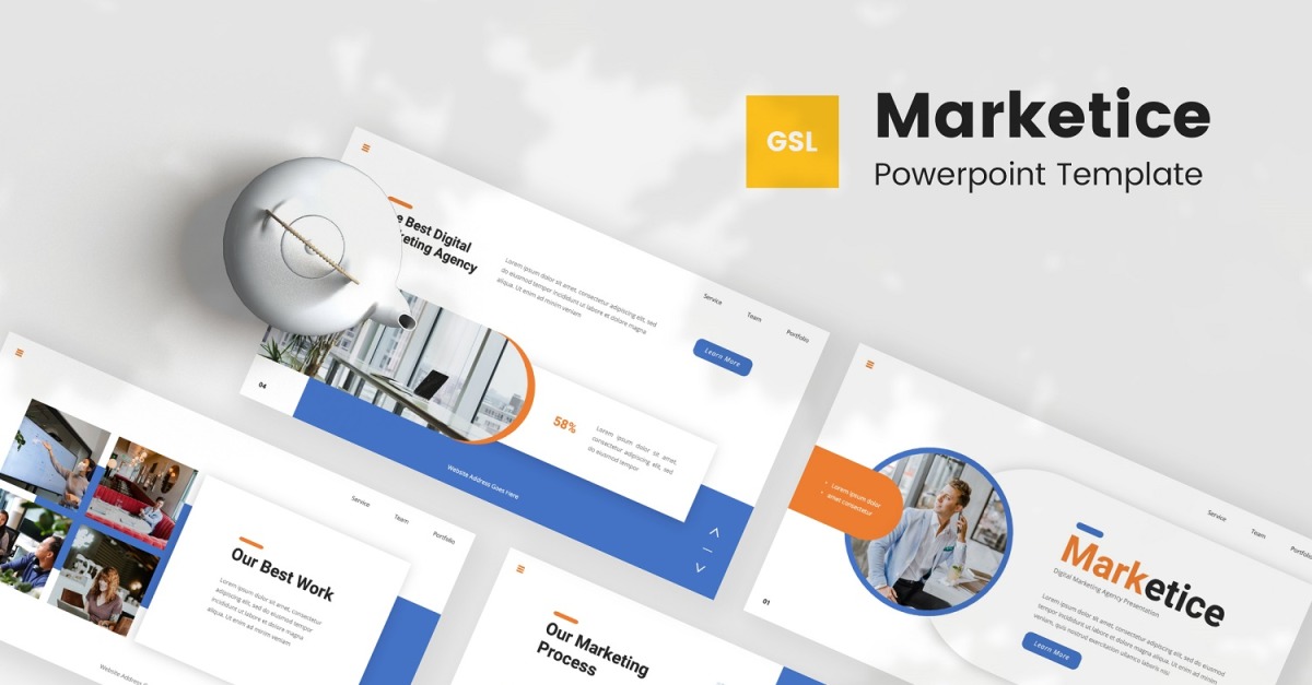 Przedstawiamy Marketice — szablon Google Slides agencji marketingu cyfrowego