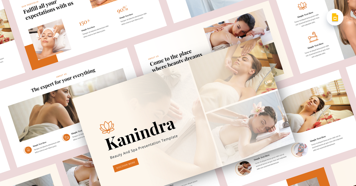 Przedstawiamy **Kanindra — szablon slajdu Google Beauty & Spa**
