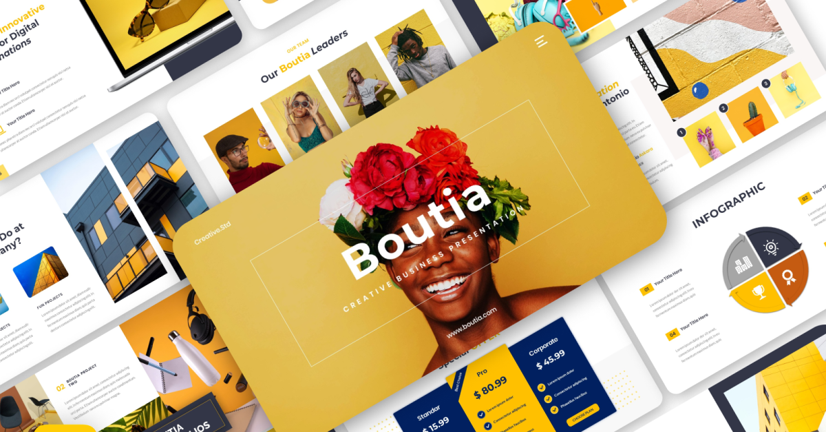Przedstawiamy **Boutia – kreatywny szablon Google Slides dla firm**