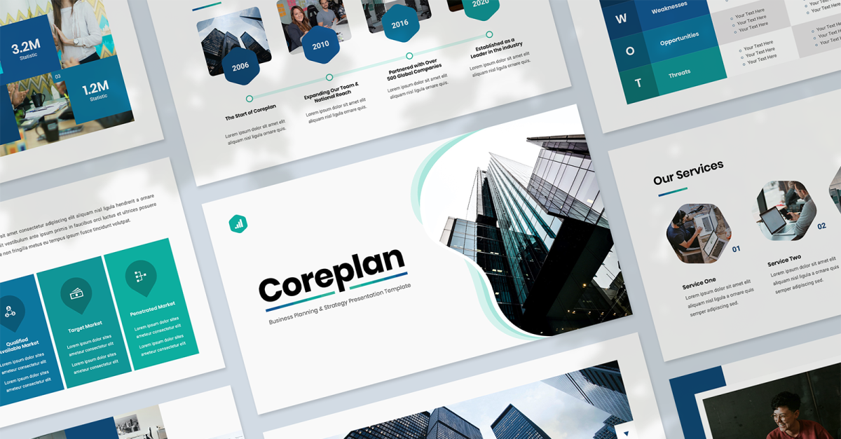 Szablon prezentacji Coreplan dla Prezentacji Google to nowoczesna i elegancka profesjonalna prezentacja, która ożywi Twoje spotkania biznesowe i wykłady. Zawiera 42 pięknie zaprojektowane slajdy, które można łatwo edytować i dostosowywać do wszystkich potrzeb zawodowych i biznesowych.