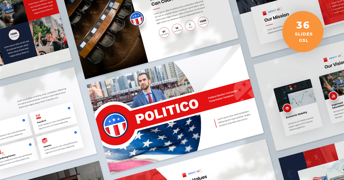 Politico – Prezentacja kampanii wyborczej politycznej Szablon prezentacji Google Slides
