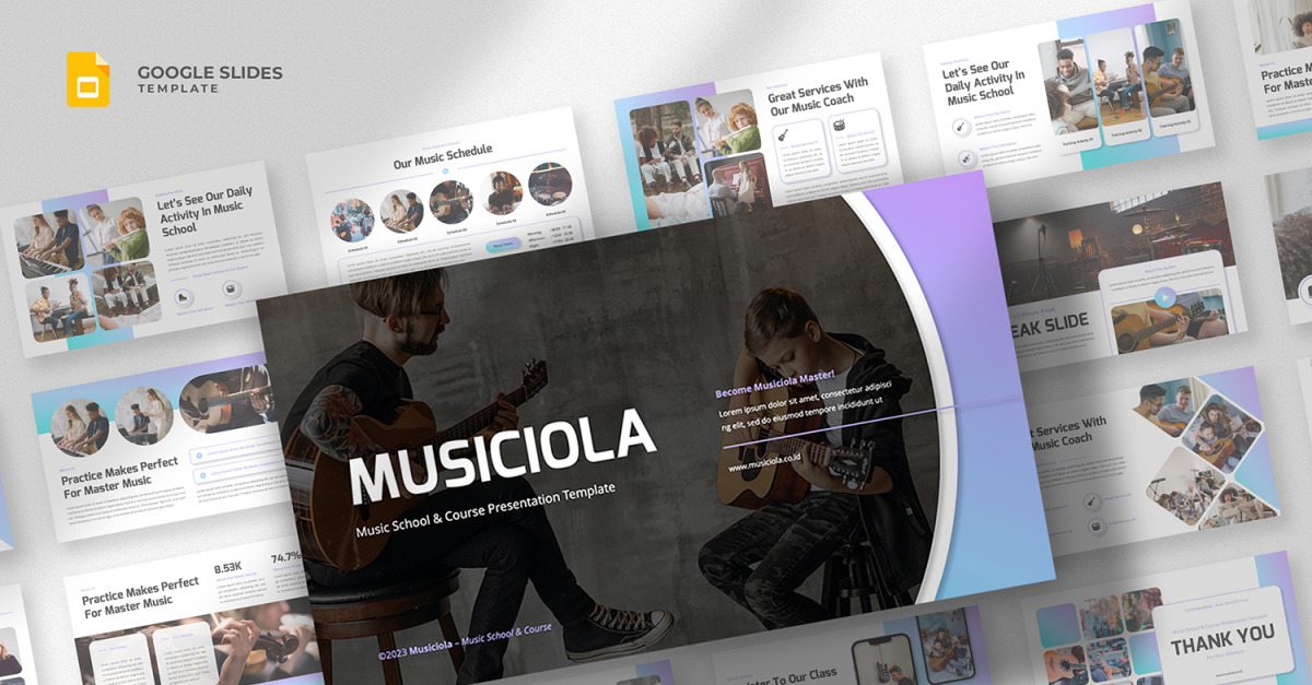 Musiciola — szkoła muzyczna i kurs Szablon prezentacji Google