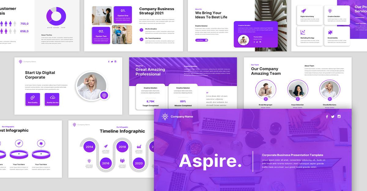 Przedstawiamy ** Aspire — szablon Prezentacji Google dla firm **