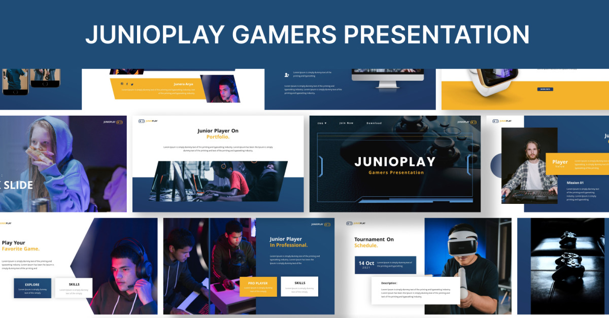 Junioplay Gamers Prezentacja slajdów Google Są to profesjonalne slajdy przeznaczone do prezentacji Twojej firmy.