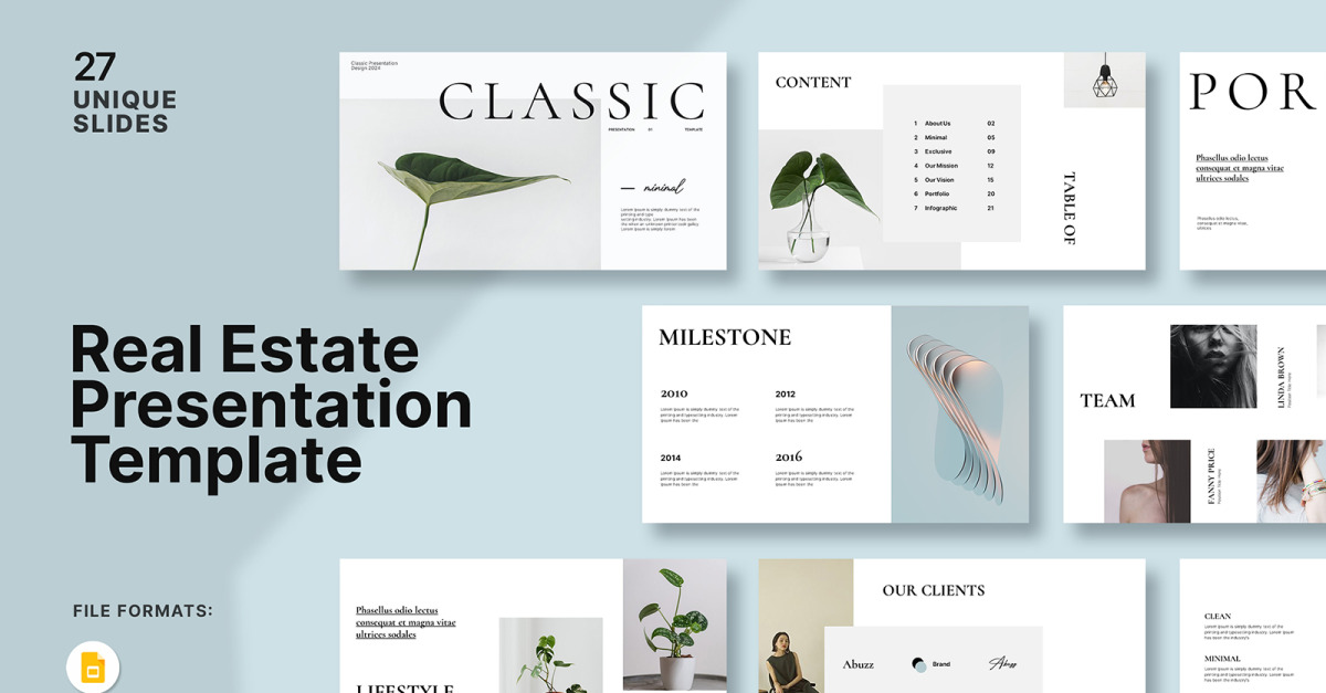 Klasyczny szablon prezentacji to klasyczny, ponadczasowy, czysty projekt, zainspirowany jedną z moich ulubionych marek: Aesop.