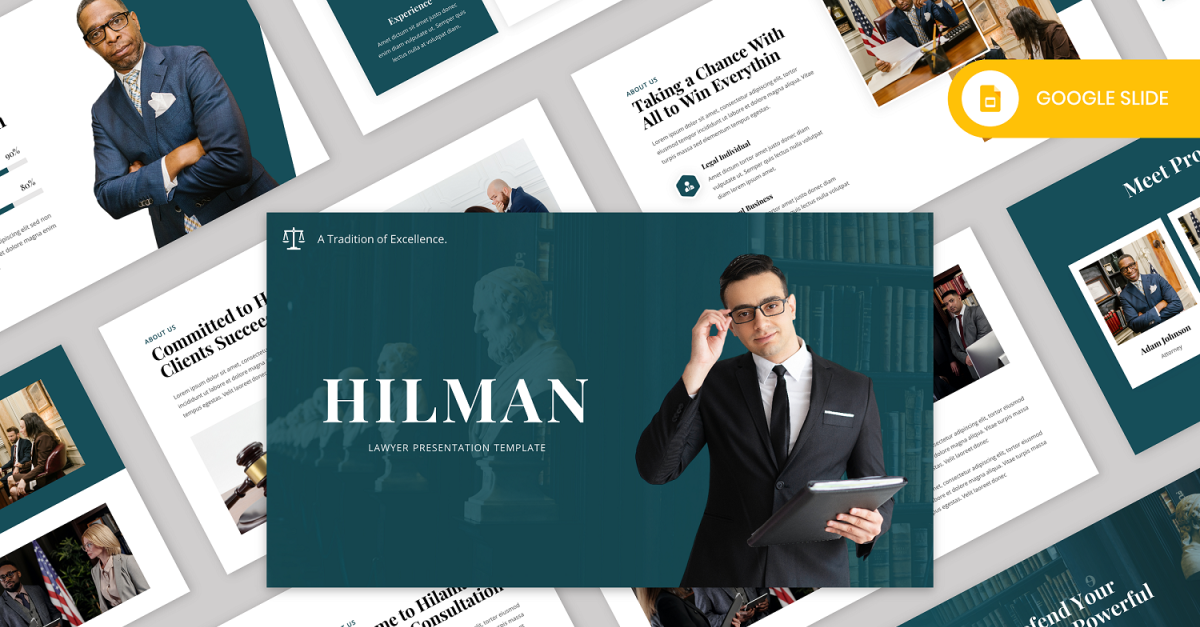 Hilman – prawnik, szablon slajdów Google