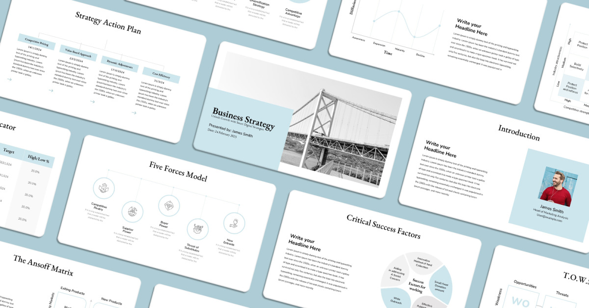 Zwiększ sukces swojego biznesu dzięki temu nowoczesnemu i profesjonalny szablon prezentacji strategii biznesowej ! Idealny dla Google Slides, ten w pełni edytowalny zestaw zawiera oszałamiające slajdy. Ten szablon zapewnia, że Twoje pomysły wyróżniają się czystym projektem, efektownymi wizualizacjami i łatwą personalizacją . Pobierz teraz i przenieś swoją strategię biznesową na wyższy poziom!