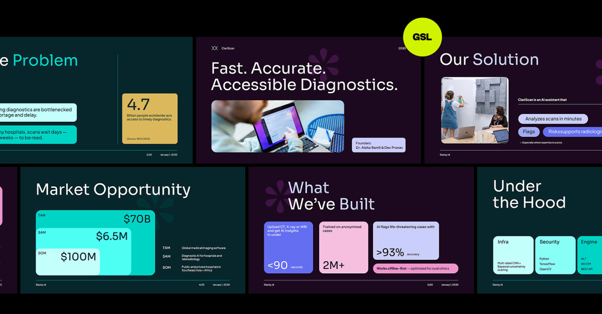 Szablon prezentacji GoogleSlide ClariScan Medtech Pitch Deck to wszechstronny szablon, który można wykorzystać do prezentacji firmy, pomysłów kreatywnych, projektów startupów, edukacji i wielu innych. Przyciągnij uwagę odbiorców dzięki naszemu profesjonalnemu i nowoczesnemu projektowi, aby uzyskać lepsze wyniki. Wiele możliwości w naszym szablonie, aby dopasować pomysły na prezentację i zaoszczędzić dużo czasu na tworzenie prezentacji. Ten szablon jest łatwy w użyciu, więc możesz go edytować bez problemów.