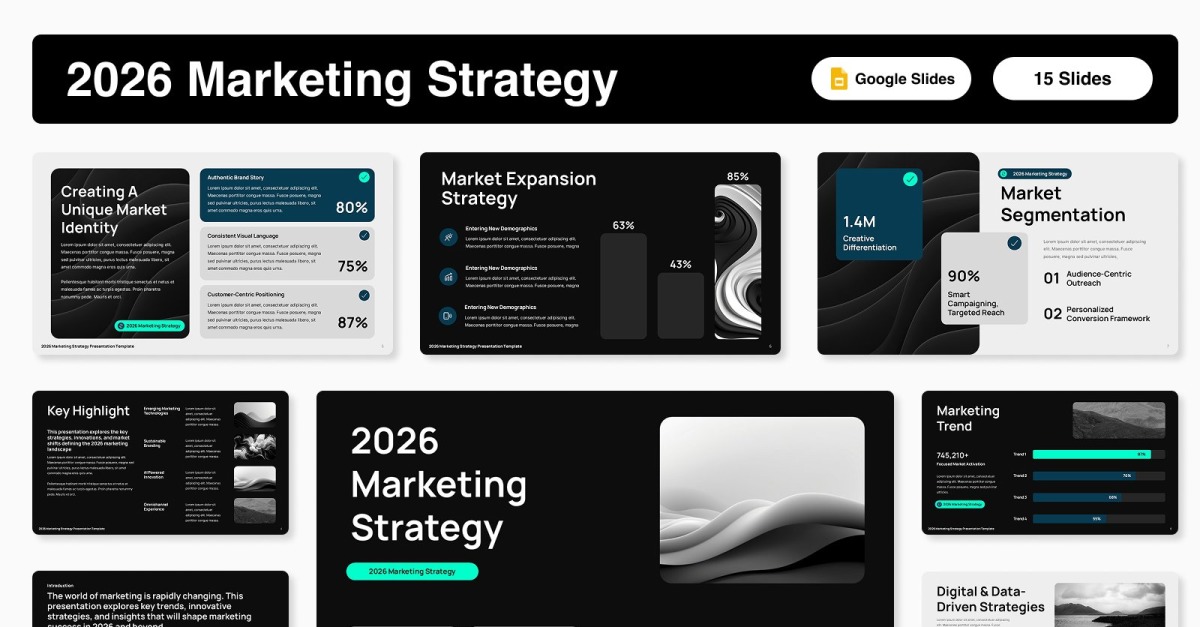 Szablon Google Slides dla strategii marketingowej na rok 2026