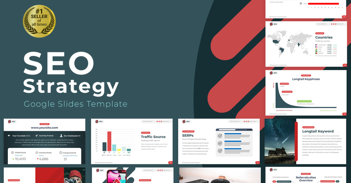 Jest to prezentacja stworzona szczegółowo, aby zaprezentować wyniki SEO Twojego badania lub projektu, niezależnie od tego, czy tworzysz kampanie, analizujesz konkurencję, czy chcesz zaprezentować swoją witrynę inwestorom. Ten szablon pomoże Ci w dynamicznej prezentacji wyników, z projektem i strukturą, które pomogą Ci sprawić, by rozmowa była płynna i profesjonalna