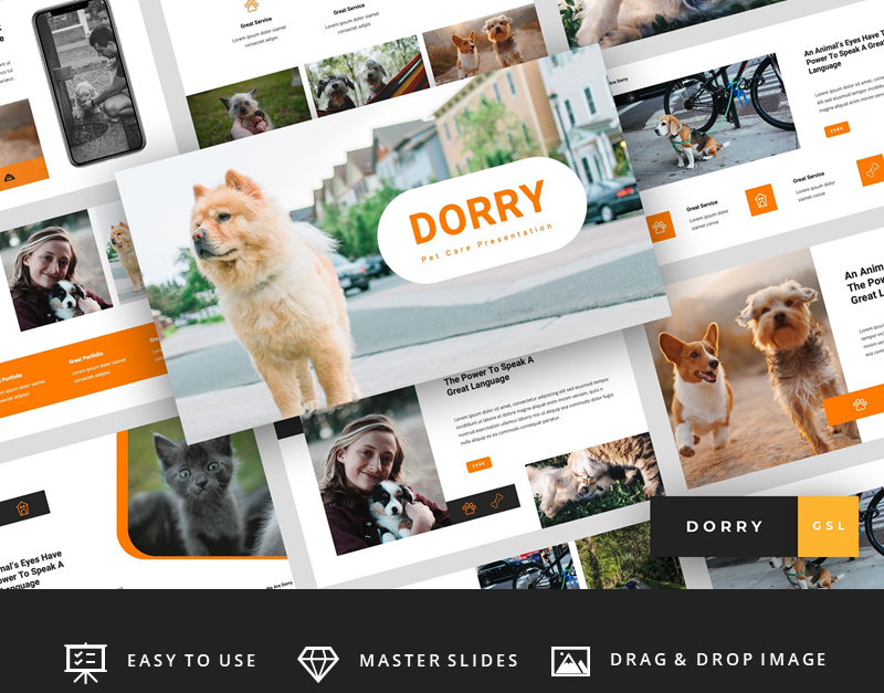 Przedstawiamy Dorry — szablon prezentacji Google dotyczący opieki nad zwierzętami
