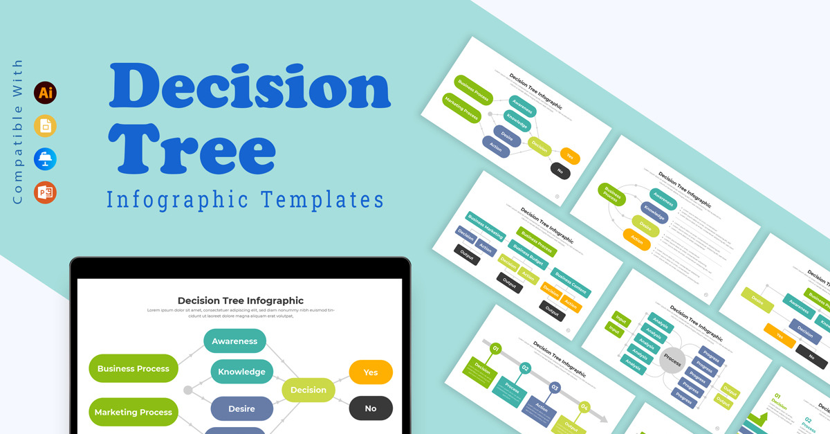 Niezależnie od tego, czy jest używany w prezentacjach biznesowych, materiałach edukacyjnych czy sesjach planowania strategicznego, ten szablon projektu infografiki drzewa decyzyjnego ułatwia skuteczne komunikowanie wyborów i ich konsekwencji. Umożliwia odbiorcom szybkie zrozumienie złożonych ścieżek decyzyjnych, zwiększając przejrzystość i świadome podejmowanie decyzji. Dzięki nowoczesnemu projektowi i przyjaznemu dla użytkownika układowi ten szablon jest cennym źródłem informacji dla każdego, kto chce wizualnie przedstawić drzewa decyzyjne z precyzją i efektownością.