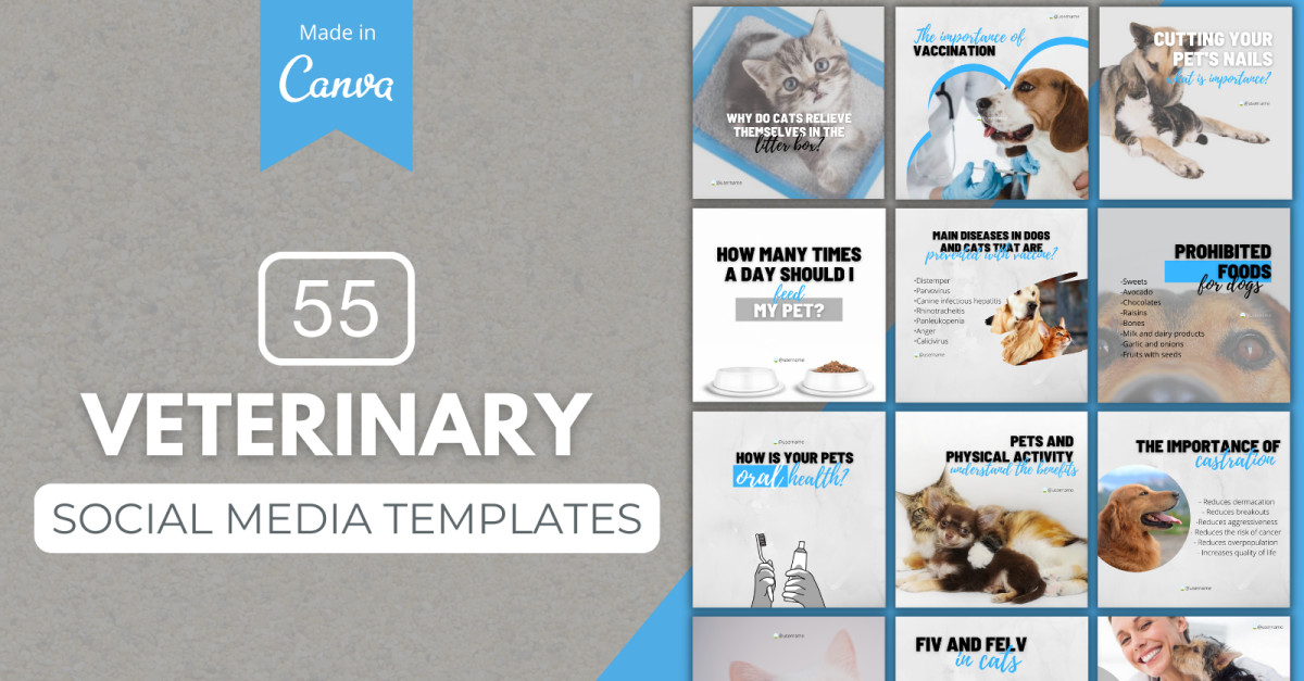 55 szablonów Canva weterynaryjnych dla mediów społecznościowych
