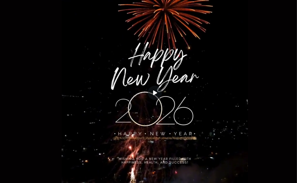 Wideo z życzeniami szczęśliwego Nowego Roku 2026 lub post w mediach społecznościowych z fajerwerkami