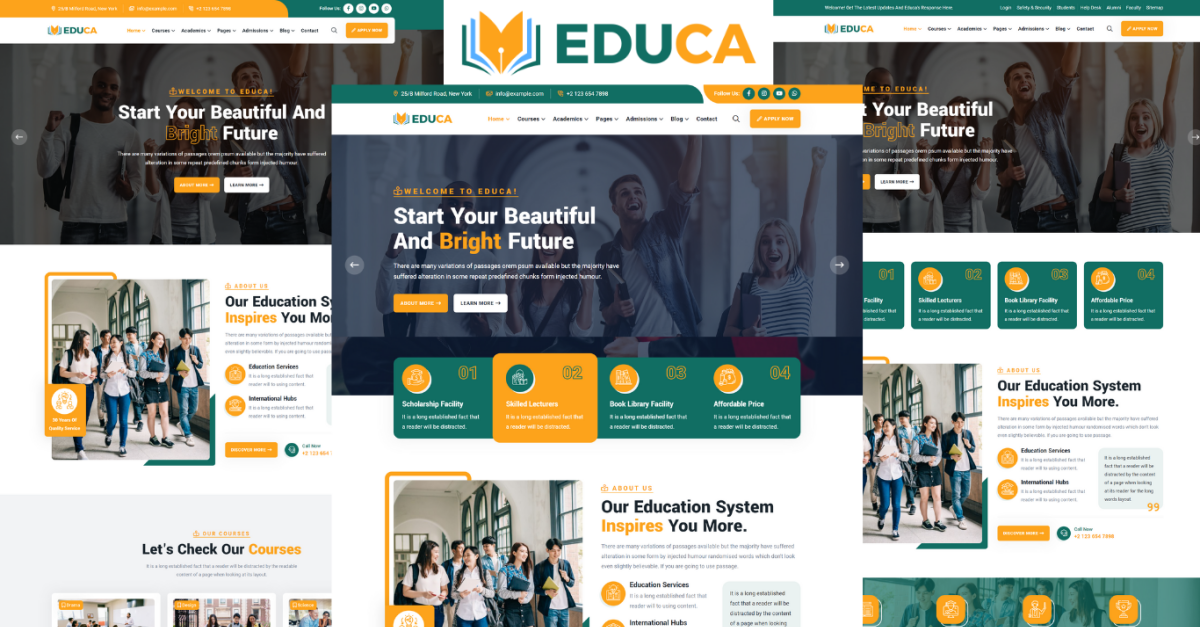 Educa - to silny i wspaniały szablon HTML5. Educa stworzony specjalnie dla akademii, college'u, szkoły, uniwersytetu, kursu, e-learningu, przedszkola, korepetycji, nauki online i wszystkich innych witryn edukacyjnych. Format Educa składa się z wydajnych części, które nie są trudne modyfikować. Dzięki nieskazitelnemu i niesamowitemu projektowi Educa to niezwykły sposób na zaprezentowanie oznakowania Twojej organizacji i wzmocnienie jej obecności w Internecie. Educa towarzyszy szczegółowej dokumentacji, która poprowadzi Cię przez najczęstsze sposoby zmiany układu w celu dostosowania do Twoich konkretnych potrzeb. Educa oferuje różne opcje w jednym pakiecie, jest to kompleksowe rozwiązanie dla każdej uczelni lub organizacji edukacyjnej.