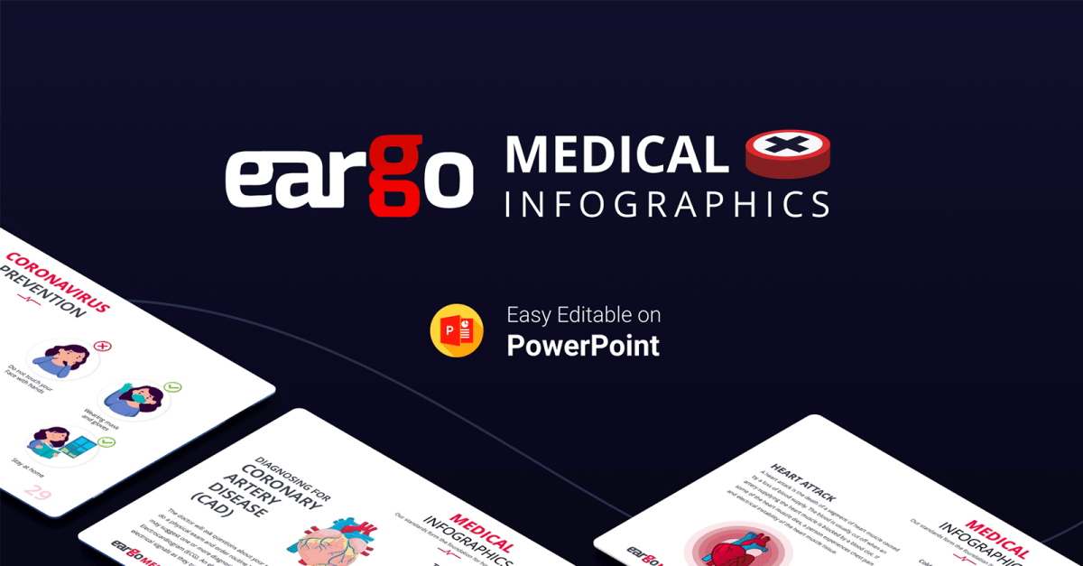 Szablon prezentacji PowerPoint z infografiką medyczną został teraz dodany do naszego pakietu Eargo. Wierząc, że narzędzia wizualne są niezbędne w różnych dziedzinach życia, stworzyliśmy te elementy infografiki medycznej, aby pomóc Ci łatwo i szybko przekazać potrzebną wiadomość.