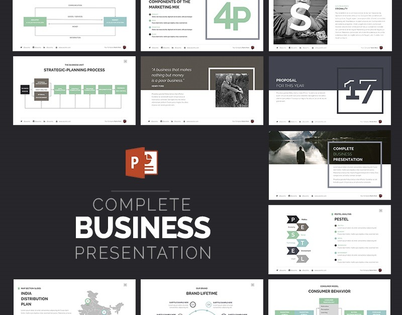 Kompletny szablon prezentacji biznesowych PowerPoint