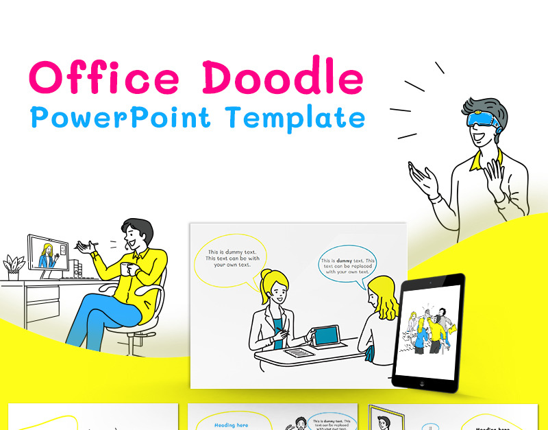 Szablon Office Doodle PowerPoint oferuje zabawny sposób na zaprezentowanie przemówienia. Zawiera bogatą grafikę i różne awatary w fajnych kolorach, dzięki którym Twoje prezentacje są bardziej wciągające, zabawne i łatwe do utożsamienia. Ten szablon przedstawia pracowników, specjalistów i osoby pracujące, zaangażowanych w swoje obowiązki zawodowe. Od świętowania zwycięstwa zespołu po prowadzenie konferencji, obejmuje szeroki zakres różnych scenariuszy pracy i sytuacji, z którymi wszyscy spotykamy się w naszych miejscach pracy. Najlepszą częścią tego zabawnego szablonu programu Powerpoint jest to, że można go w pełni dostosować i edytować, aby dopasować go do własnych potrzeb. Wystarczy go pobrać i voila! Możesz iść.