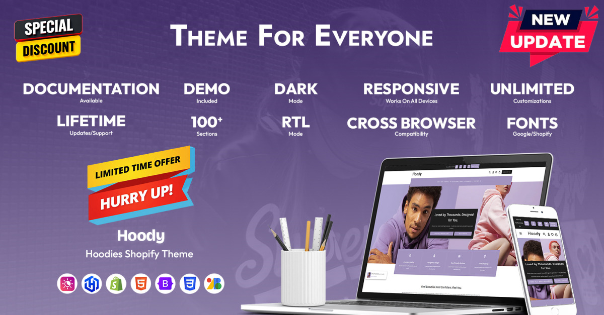 Hoody to motyw Shopify 2.0 nowej generacji nowej generacji, zaprojektowany specjalnie dla Hoody — bluzy z kapturem, Tshirt, moda, ubrania, kobiety, mężczyźni, stroje kąpielowe, odzież i wiele innych. Ten motyw zawiera ponad 35 gotowych sekcji Shopify typu „przeciągnij i upuść”, które zapewnią temu motywowi wiele permutacji i kombinacji w celu zaprojektowania dowolnego projektu dla dowolnej niszy bez umiejętności i wiedzy w zakresie kodowania. Jest to specjalnie zoptymalizowane pod kątem urządzeń mobilnych, ponieważ wszyscy wiemy, że obecnie większość ruchu pochodzi z platform mobilnych. Potężny motyw z unikalnymi funkcjami daje Ci możliwość tworzenia motywu z nieograniczonymi możliwościami. Motyw ten jest wyposażony w gotowe czcionki Google, które również odgrywają kluczową rolę w wyglądzie i działaniu witryny. Motyw ten obsługuje także funkcję RTL, która jest bardzo przydatna w przypadku stron internetowych w języku RTL. Dostępnych jest także ponad 12 różnych stron z układami produktów, które nadają Twojej witrynie wygląd nowej generacji.