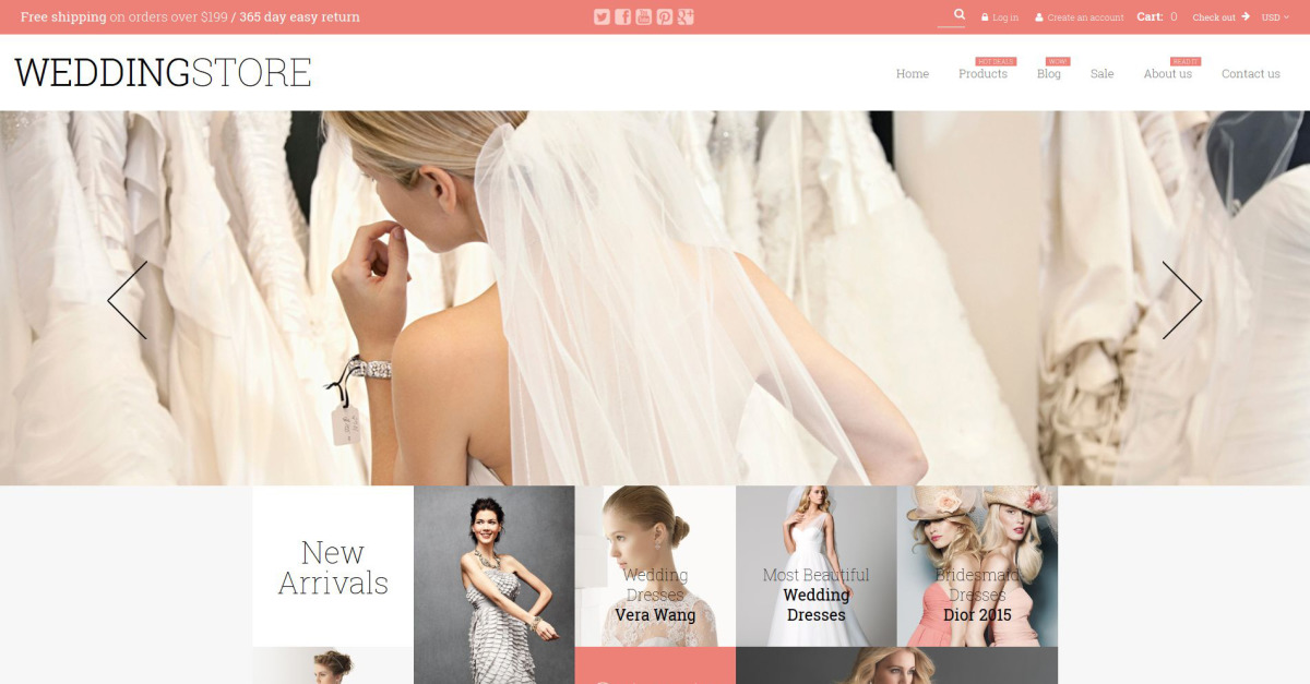 To jest motyw e-commerce Parallax Wedding Shop Shopify