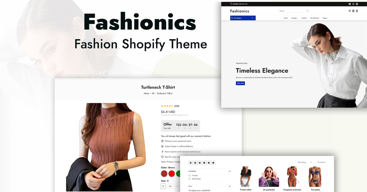 Dlaczego Fashionics? Masz tylko jedną szansę, aby zrobić pierwsze wrażenie, a Fashionics gwarantuje, że Twoja marka będzie niezapomniana. Dzięki zachwycającym efektom wizualnym, elastycznym narzędziom do projektowania i wbudowanym, zaawansowanym funkcjom sprzedażowym, Fashionics to Twoja tajna broń w drodze do sukcesu w Shopify.
