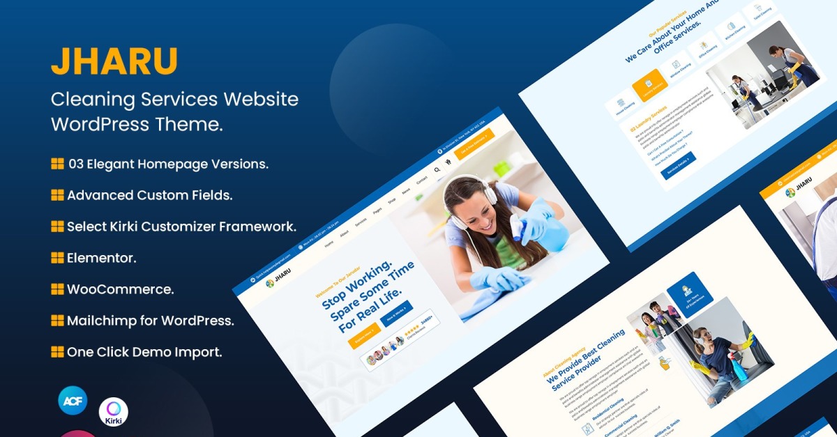 Niektóre z kluczowych cech motywu WordPress dla serwisu sprzątającego Jharu obejmują: