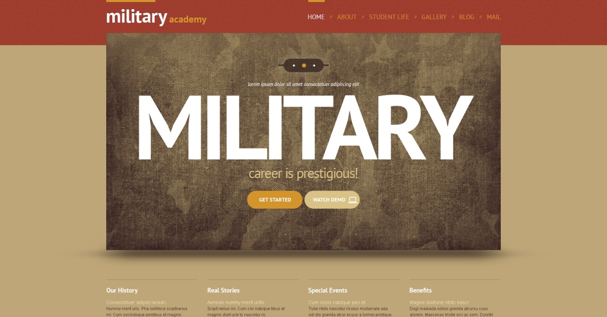 Po instalacji szablonu projektu Wordpress dla militarystów zobaczysz niewyraźne obrazy zawarte wyłącznie w celach demonstracyjnych.
