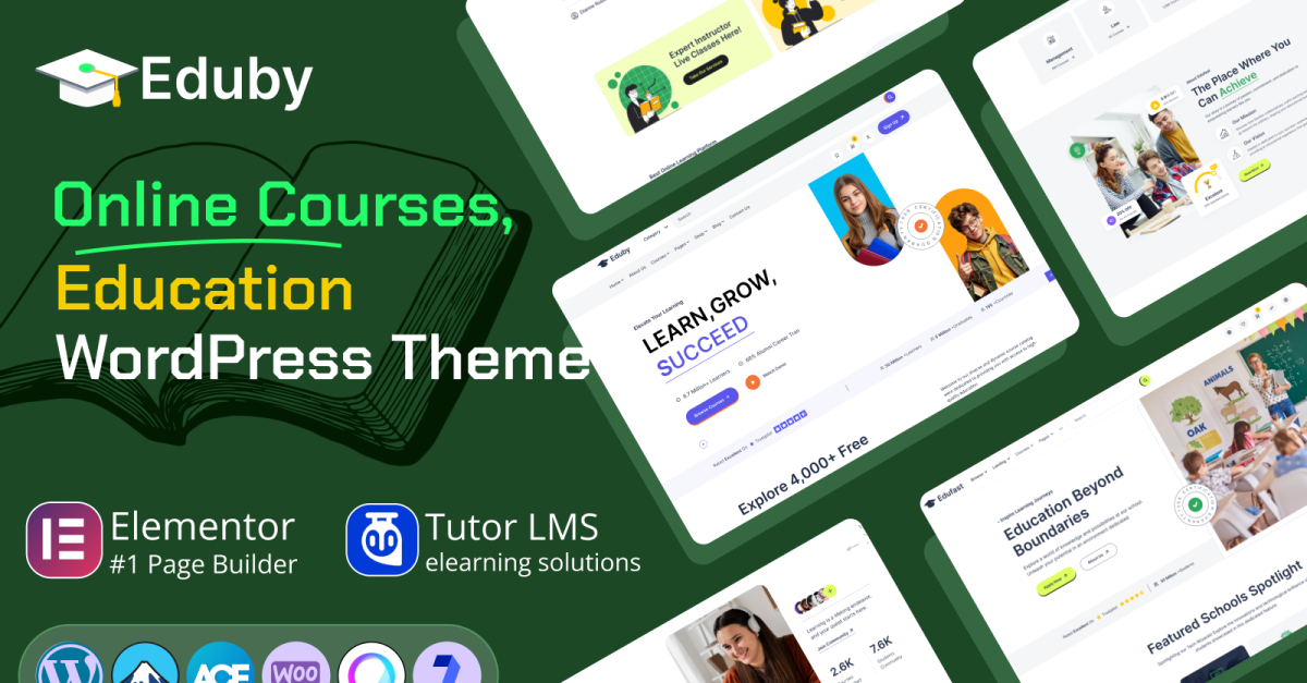 Eduby – Education & Online Course WordPress Theme to potężny, nowoczesny i w pełni responsywny motyw WordPress zaprojektowany specjalnie dla instytucji edukacyjnych, platform do nauki online, centrów szkoleniowych, szkół, uniwersytetów, korepetytorów i twórców kursów. Zbudowany z Elementor i wyposażony w solidne funkcje, Eduby sprawia, że tworzenie profesjonalnej witryny edukacyjnej online jest szybkie, intuicyjne i niezwykle elastyczne — bez pisania ani jednej linijki kodu.