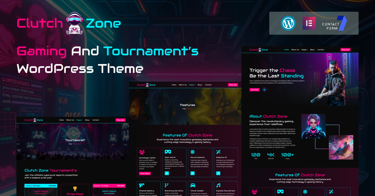 Clutch Zone to odważny i futurystyczny motyw WordPress stworzony specjalnie dla graczy, drużyn e-sportowych, turniejów i społeczności gier online. Dzięki eleganckiemu, cyberpunkowemu designowi, ten motyw zapewnia wysoką wydajność dostosowaną do platform gamingowych, streamerów i blogów gamingowych.
