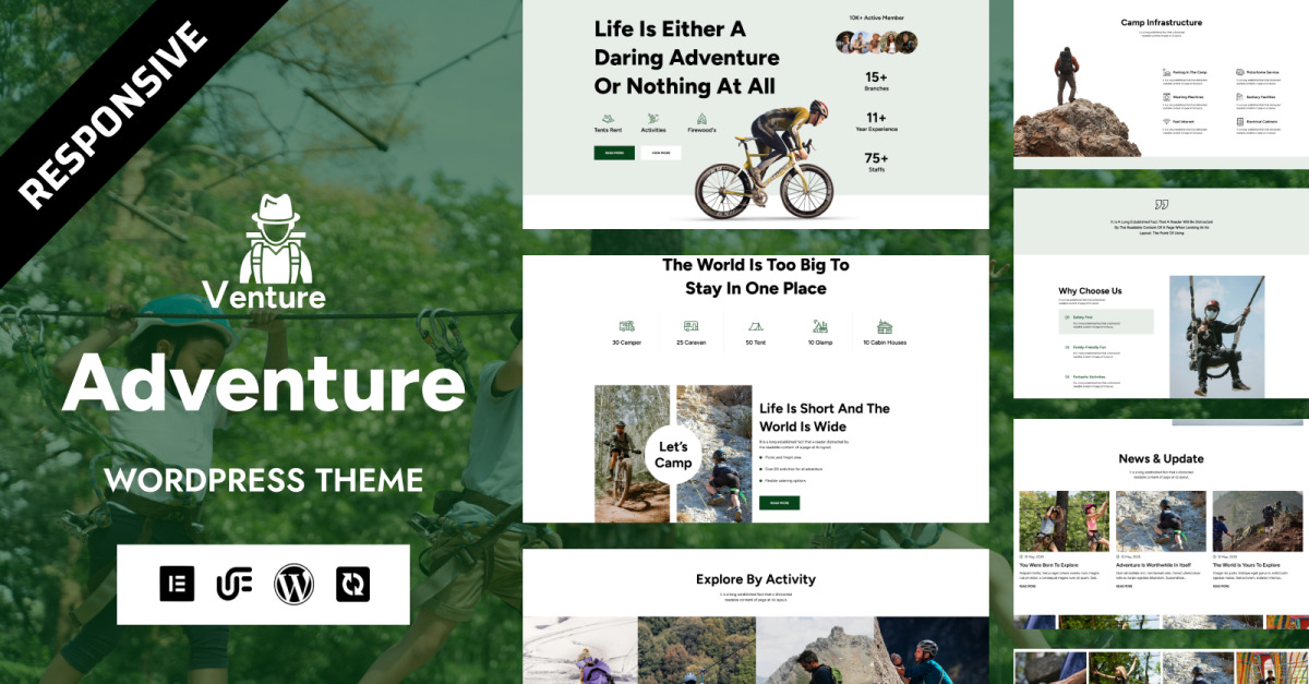Venture - Motyw WordPress Elementor dla sprzętu kempingowego, przygód i aktywności na świeżym powietrzu