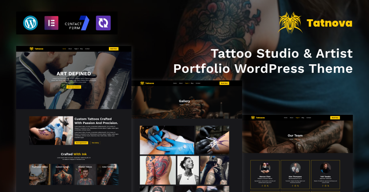 Tatnova to odważny, artystyczny i wizualnie urzekający motyw WordPress stworzony dla studiów tatuażu, artystów i profesjonalistów kreatywnych. Zaprojektowany z mroczną elegancją i nowoczesną estetyką, oferuje idealną równowagę między kreatywnością a profesjonalizmem, pomagając tatuatorom prezentować swoje prace w stylowy sposób.
